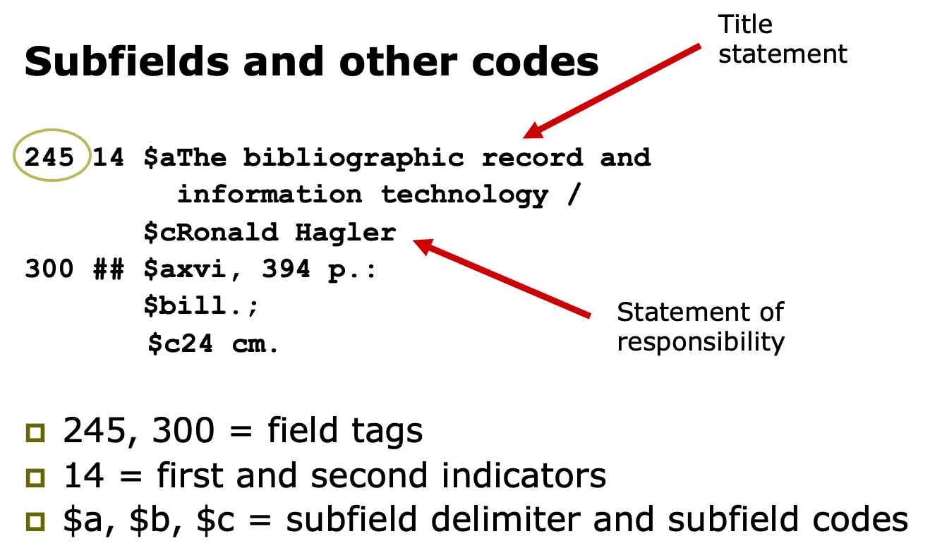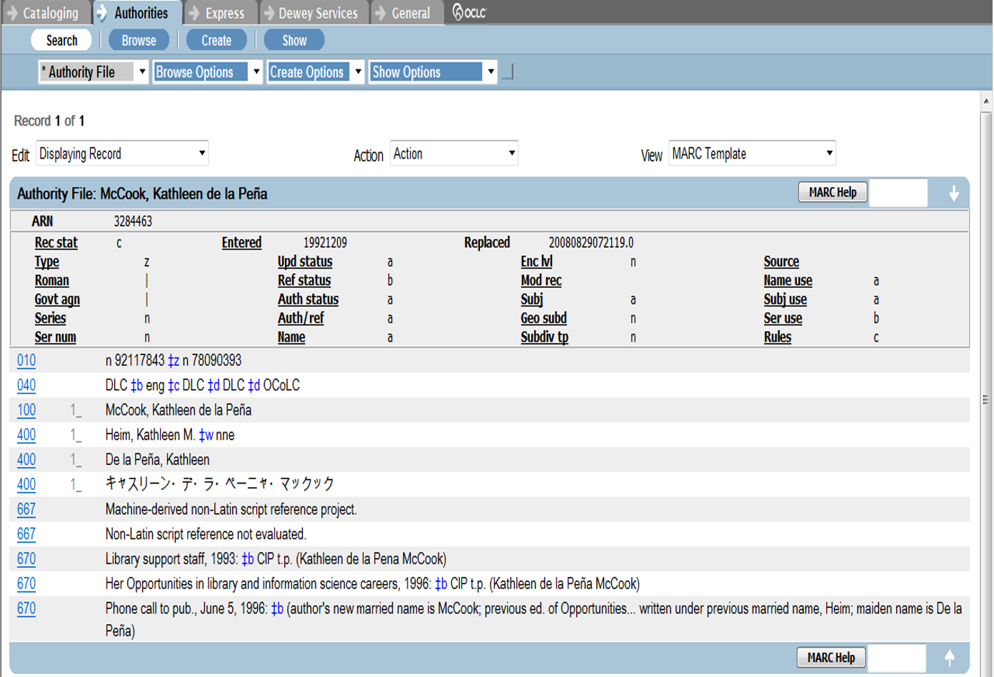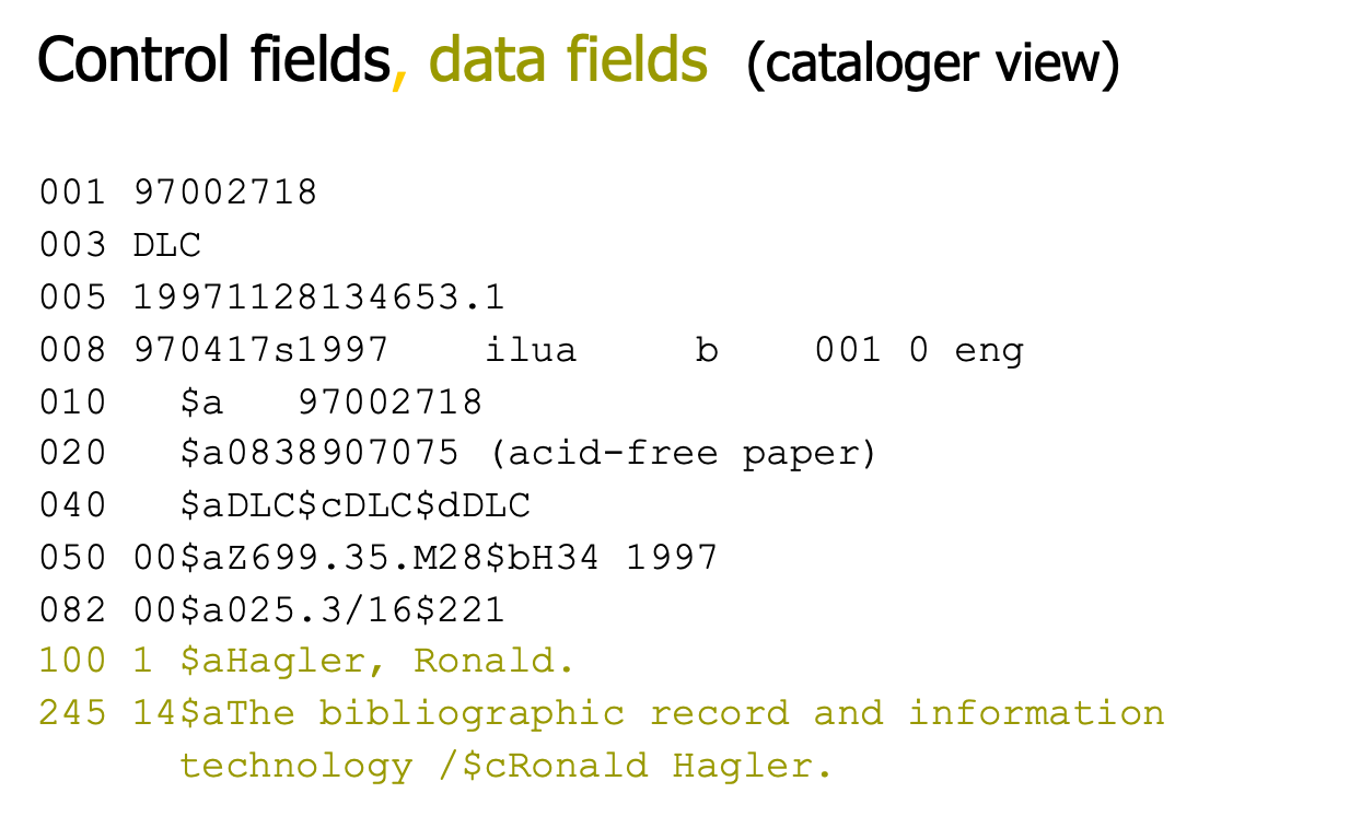 Once we either construct an authorized access point OR we use an authority file to determine the authorized access point, we would use this name, title, or subject term in the appropriate field in our MARC bibliographic record.
