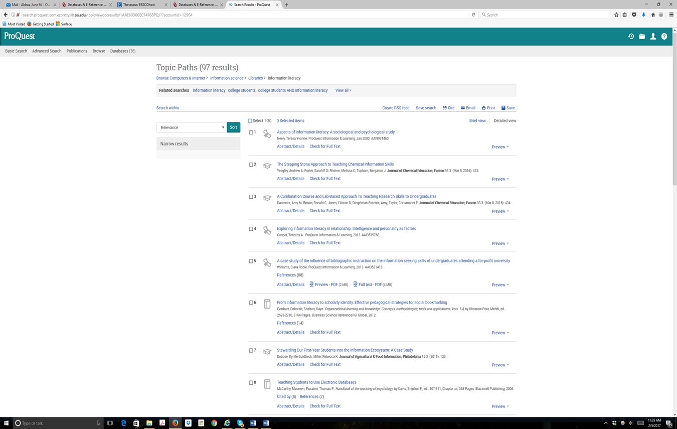 REMEMBER: It is possible that there are no documents that match your needs in that particular source. Review the question and re-evaluate your choice of source. Should you change databases? Go onto the Web? Online resources are fairly comprehensive, but they do not contain everything.