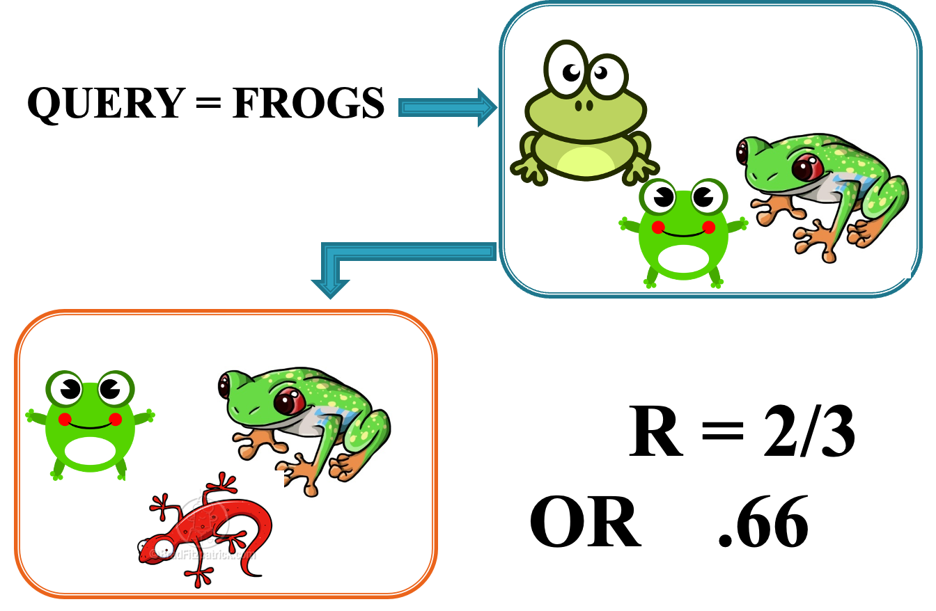 RECALL = Relevant Documents in a IR Set/All relevant documents in the database