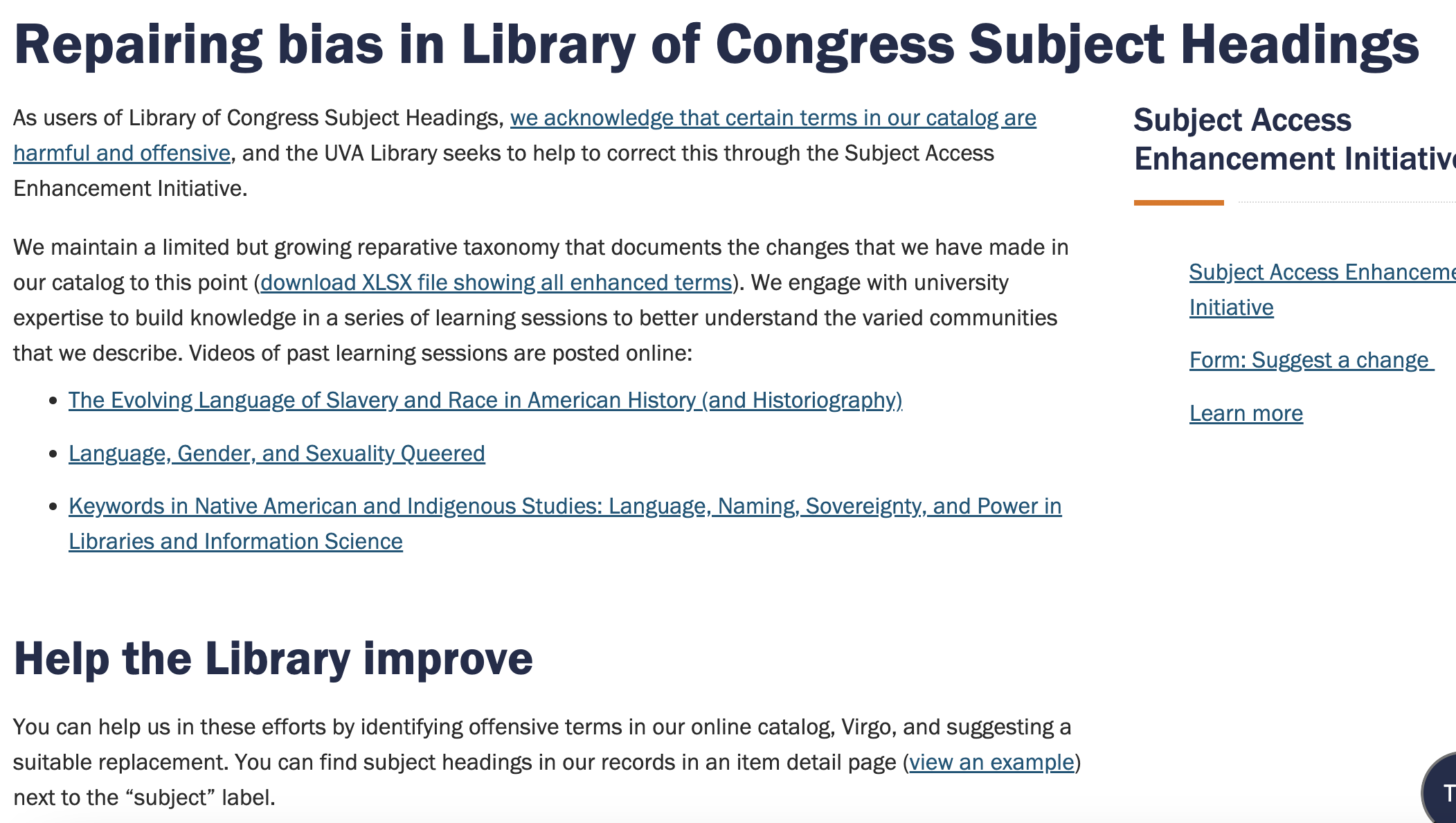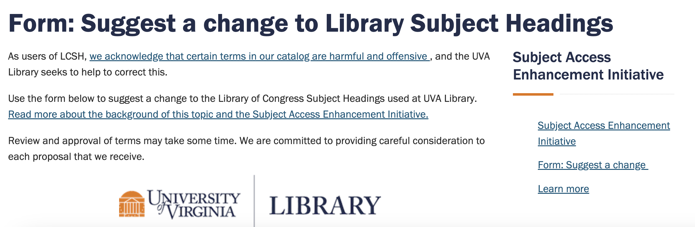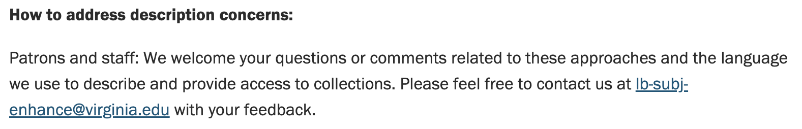 Statement on Harmful Language in Cataloging and Archival Description by University of Virginia Library