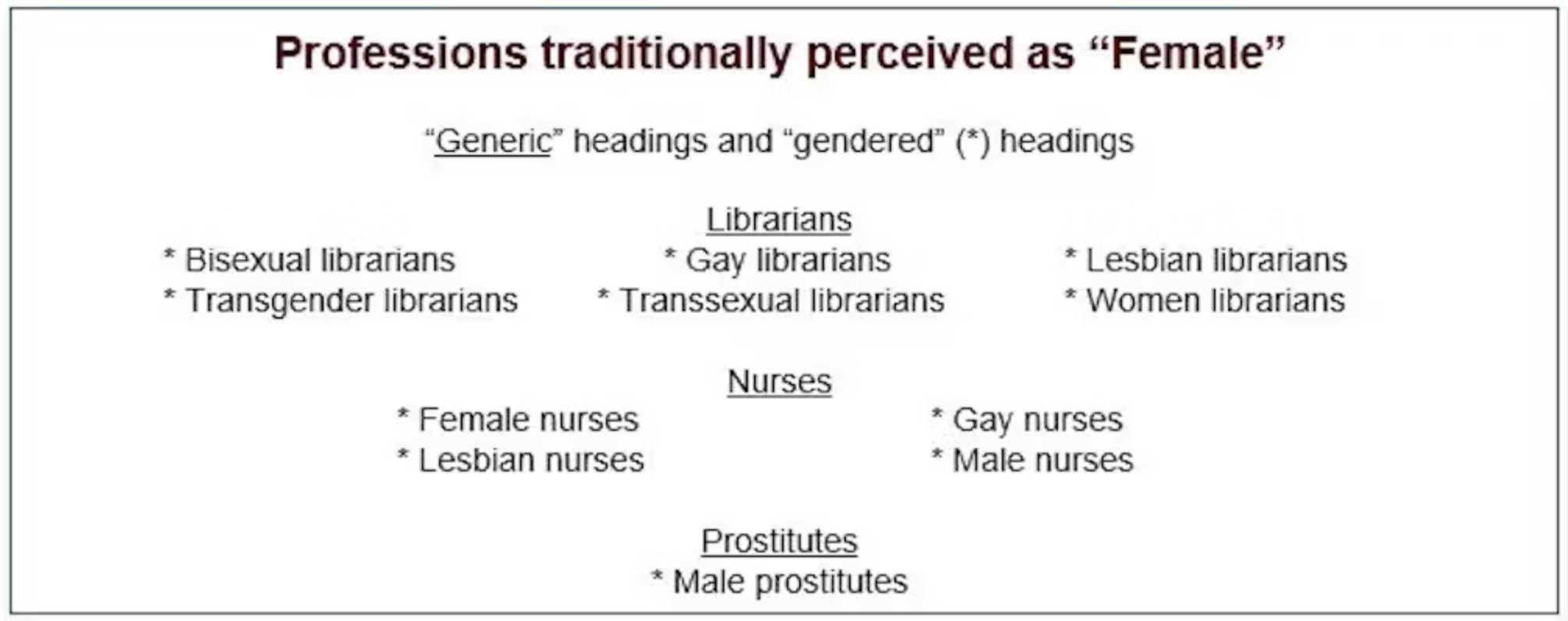 Official Library of Congress subject headings for three professions traditionally perceived as female. Amanda Ros. CC BY