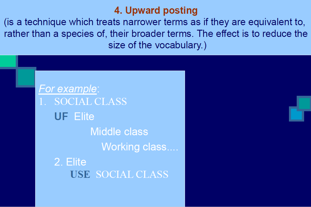 Its purpose is to promote consistency in the indexing of documents predominantly for post-coordinated ISAR