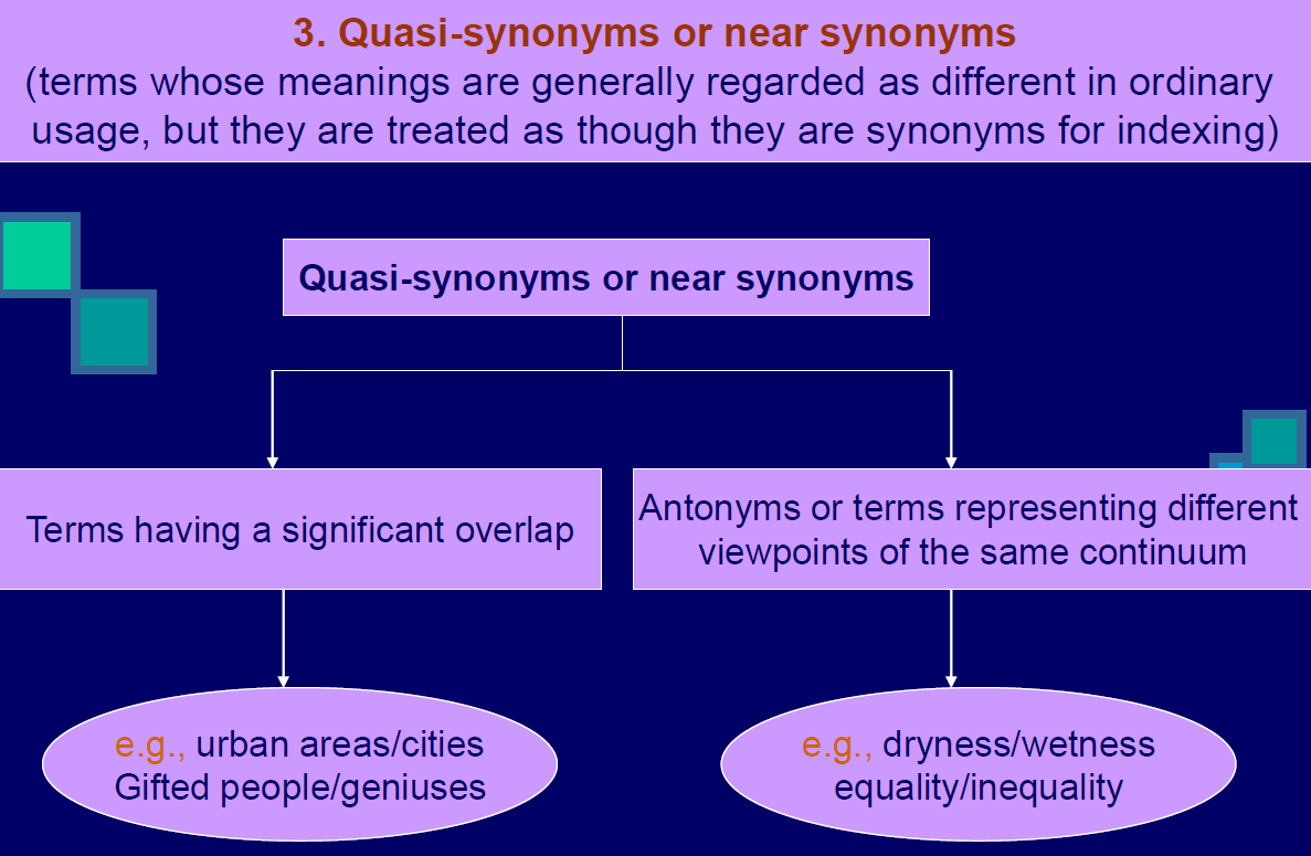 It is the relationship between preferred & non-preferred terms where 2 or more terms are regarded for indexing purposes as referring to the same concept