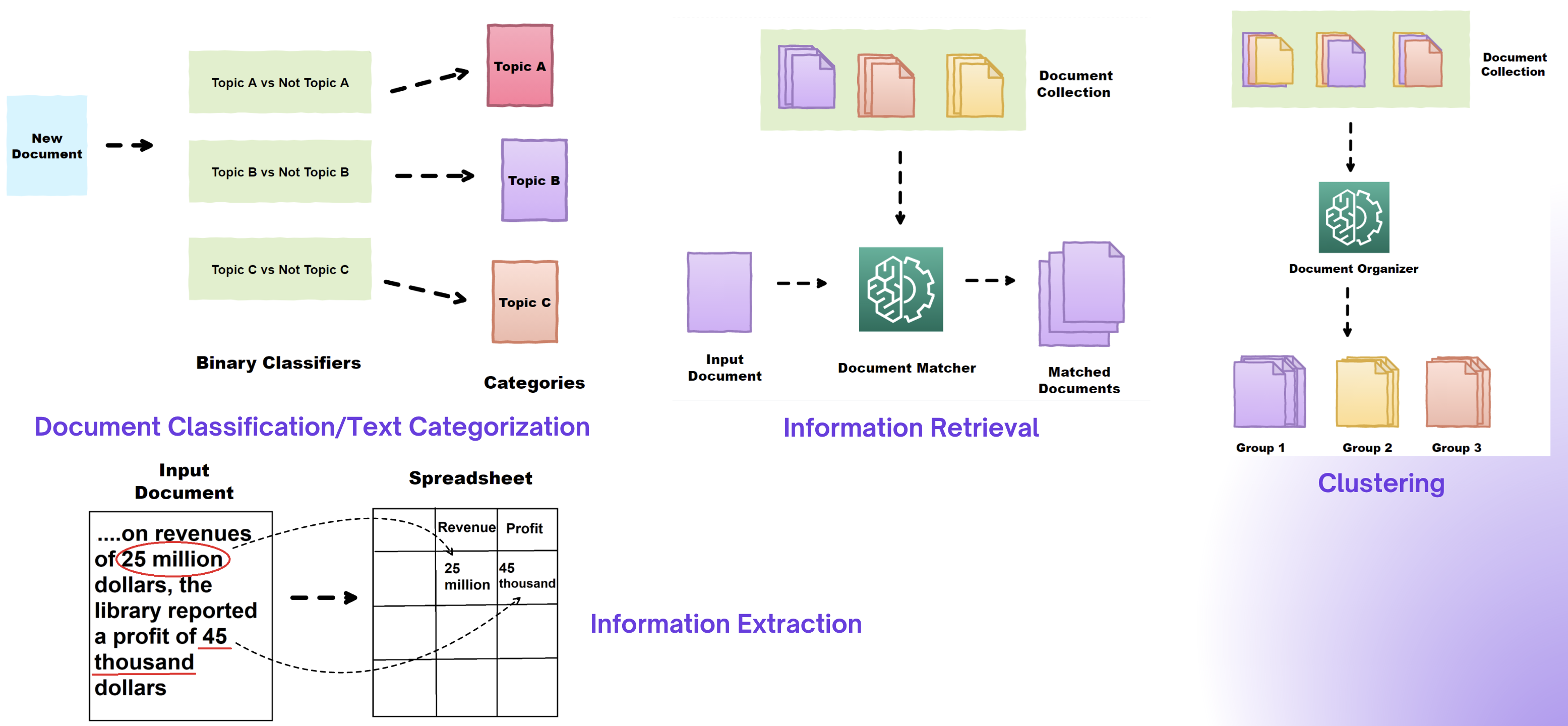 Text Mining is about discovering patterns and knowledge from large collections of text