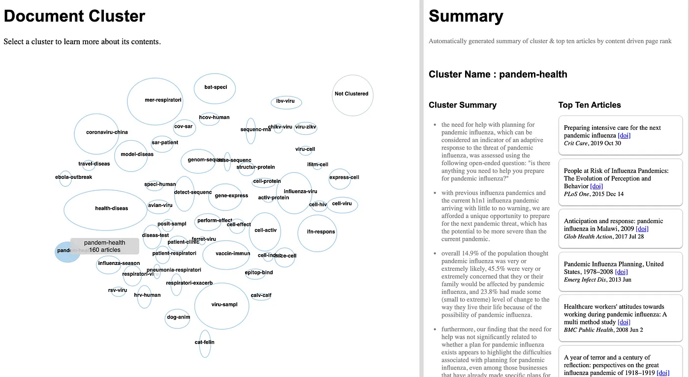 Output of topic modeling is not entirely human-readable, and one way to understand the results is through visualization